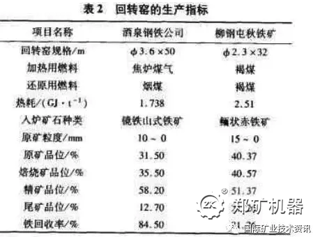 3)回转窑:入窑矿石粒度为-25mm,德国鲁尔公司生产的回转窑,生产率为900~1600t/d。相对竖炉来讲,其焙烧矿质量及分选指标均较好如表2所示。但存在一次性投资比较大不足。